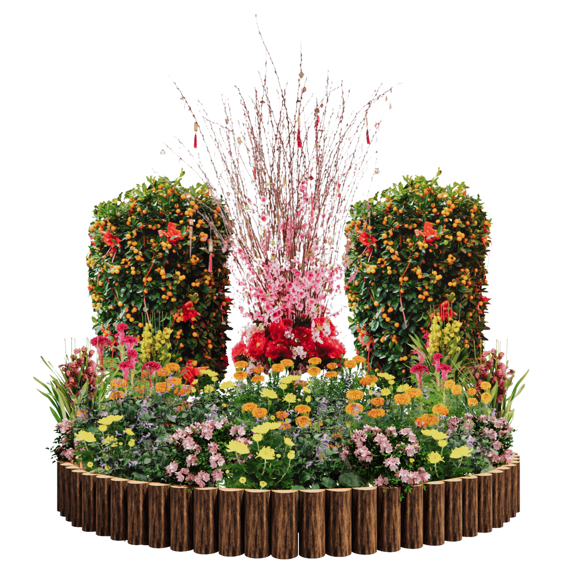 Seven (7) different Chinese New Year flowering plants grouped, covering up to 2.5 meters in diameter