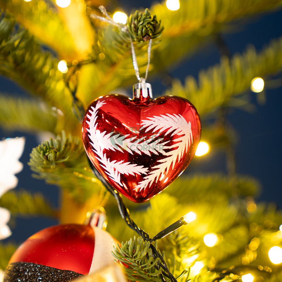 Celebrate love and festive cheer with the Heart Bauble. Featuring a charming heart design with a glossy finish, this ornament adds warmth, joy, and a touch of playfulness to your Christmas tree.