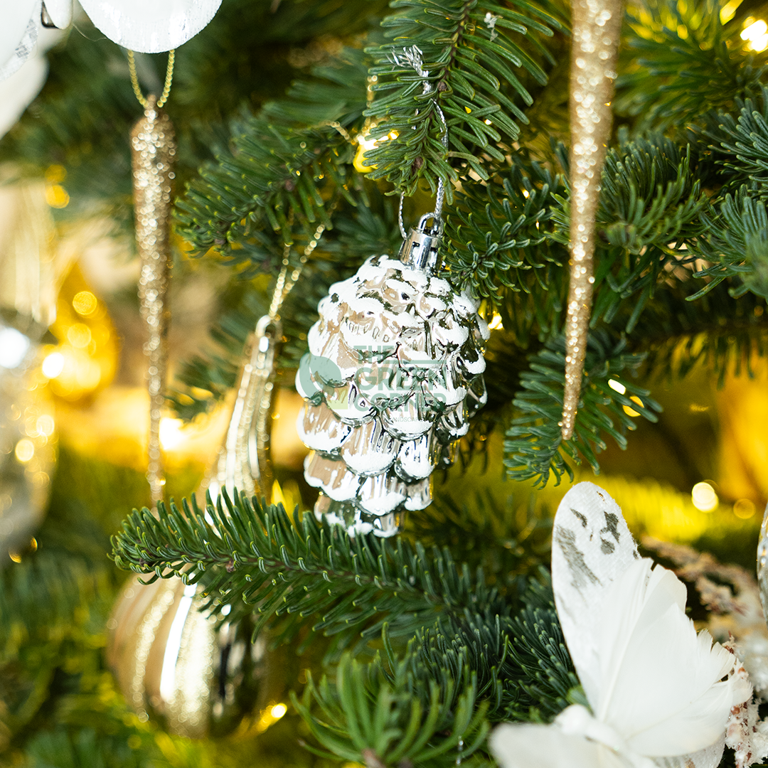 Celebrate the beauty of nature with a festive twist through the Sterling Pinecone. Finished in a radiant sterling silver tone, this ornament captures the intricate detail of a pinecone while adding a touch of winter sparkle to your Christmas tree.
